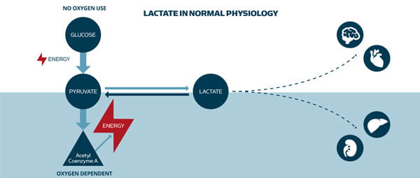 Les cellules du corps produisent de l’énergie en convertissant le glucose en pyruvate, qui est ensuite converti en Acétyl-coenzyme A, la principale source d’énergie du corps [5]. La dernière partie du procédé dépend de l’oxygène. Lorsque les niveaux d’oxygène sont insuffisants, le pyruvate est métabolisé en lactate [5].