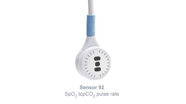 La tcpCO2 est mesurée à l’aide d’un capteur placé à la surface de la peau. Un capteur tcpCO2 utilise le principe Stow-Severinghaus; le CO2 réagit avec l’eau pour former de l’acide carbonique et se dissocie en H+ qui sont interprétés à travers un élément de verre pH. Après conversion, l’algorithme du capteur génère une tcpCO2 en mmHg (millimètres de mercure) ou kPa (kilopascals).